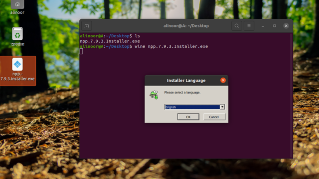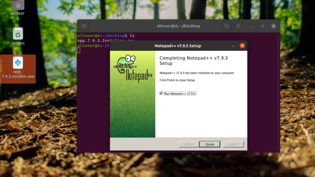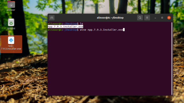 পঃ ২ নোটপ্যাডে+ কে টার্মিনাল এ ওপেন করি এবং ls কমান্ড দিলে যদি installer.exe ফাইল না আসে তাহলে ls এর পরে cd desktop