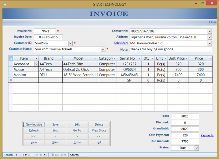 শুরুতে আমার সালাম নিবেন। আজকে আমার টিউনের বিষয় মাইক্রোসফট অফিস অ্যাকসেস দিয়ে তৈরি করা একটি প্রোগ্রাম যার মাধ্যমে একটি দোকানের হিসাব সহজেই সংরক্ষন করতে পারবেন। প্রোগ্রামটি সম্পূর্ন আমার নিজের তৈরি করা। অনাকাঙ্খিত ভূলত্রুটি ক্ষমার দৃষ্টিতে দেখবেন।