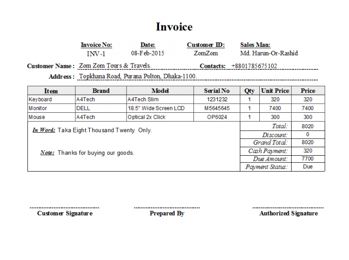 (2) Invoice তৈরি এবং বিক্রয়ের হিসাব এবং বিক্রয় রিপোর্ট। Sales Report, Daily, Monthly, Yearly abd Between two date.