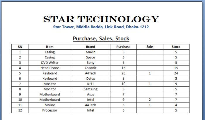 (3) স্টক হিসাব। Stock Report, Item, Brand, Model Wise.
