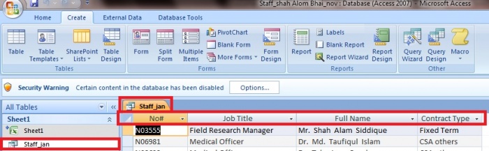 সর্বশেষ আমার টেবিল ক্রিয়েট হয়ে যাবে।এখানে লক্ষ্য করলে দেখা যাবে আমি যে যে ফিল্ড সিলেক্ট করেছিলাম,অই ফিল্ড গুলো টেবিলের একেবারে প্রথম রো তে দেখা যাচ্ছে।