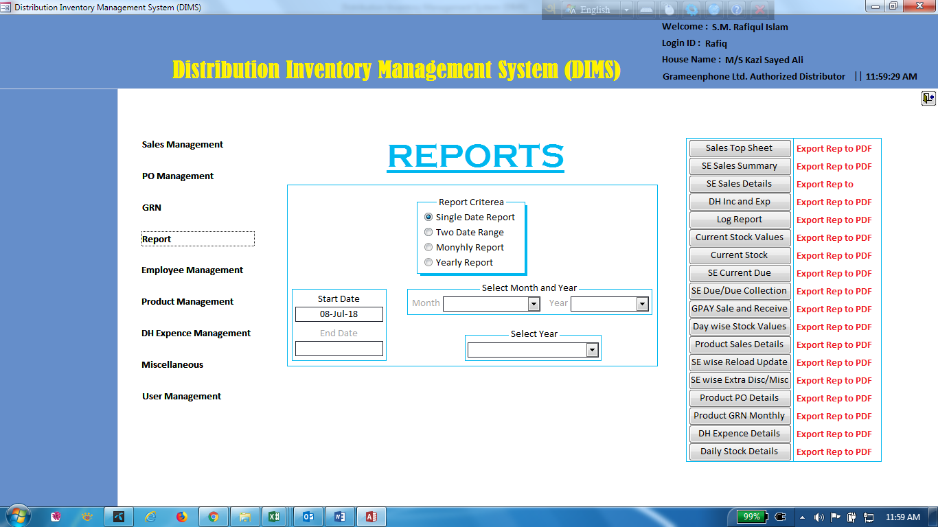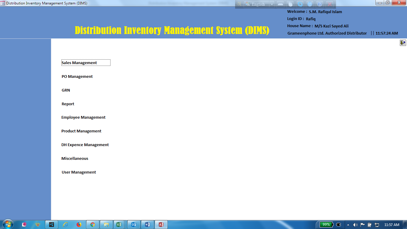 এটা আমার প্রথম টিউন। আমি টেকটিউনস্ এর একজন নিয়মিত পাঠক, এই সাইটের অনেক বিসয় আমার বেস ভাললাগে, বিশেষ করে Microsoft Access এর টিউনস্। তই আমার শ্রোদ্ধেয় বড়ভাই বা শিক্ষক হারুন ভাই এর কাছথেকে অনুপ্রানিত হয়ে, আমার বানান প্রথম Database ভিত্তিক প্রজেক্ট Distribution Inventory Management System (DIMS) আপনাদের সাথে শেয়ার করলাম। এটি এমন একটি Database যাতে একটি Distribution House এর যাবতিয় হিসাব নিকাশ পর্যবেক্ষন করা যাবে। আমার এই Database টি বিশেষ করে গ্রামীনফেন Distribution House কে কেন্দ্রকরে বানান। আপনাদের বোঝার সুবিদর্থে কিছু Screenshot.