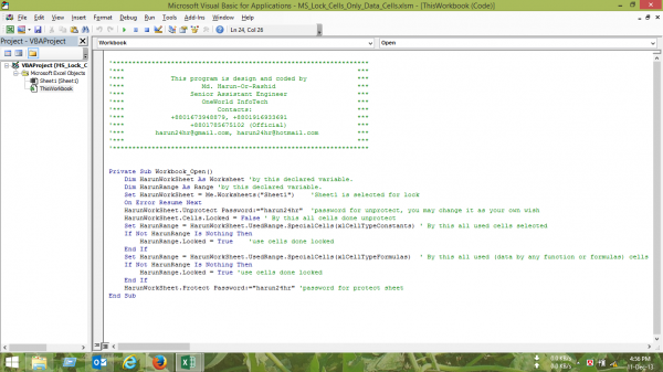 HarunWorkSheet.Protect Password:="harun24hr" 'password for protect sheet