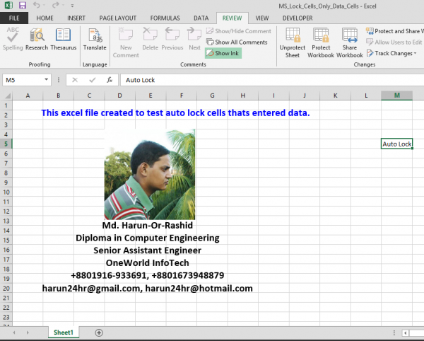 (৫) কোন সেলে ডাটা এন্ট্রি করার পর save বাটনে ক্লিক করলেই সেই সেল লক হয়ে যাবে। শিট আনপ্রটেক্ট করে আবার ডাটা এন্ট্রি করতে পারবেন। তবে সেক্ষেত্রে password চাইবে।