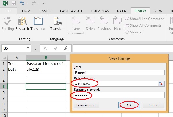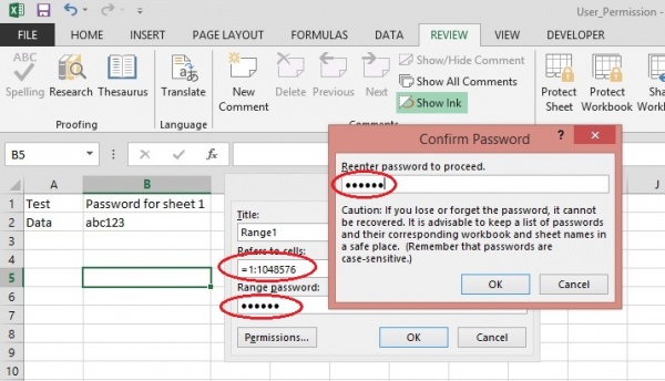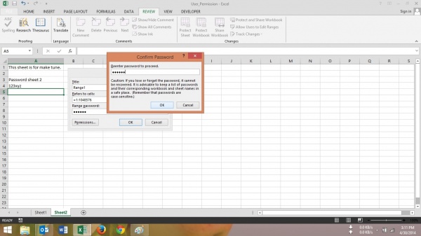 দ্বিতীয় শীটের ক্ষেত্রে একই ধাপসমূহ অনুসরন করুন, শুধুমাত্র “Range Password” টি ভিন্ন ব্যবহার করুন। এখন যে user যে শীটের password জানবে শুধুমাত্র সেই ঐ শীটে এডিট করতে পারবে। এভাবে আপনি কিছু সেল বা কয়েকটি কলামকেও permission দিতে পারেন।