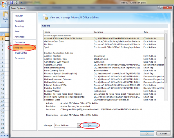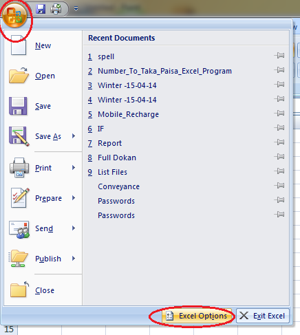 (২) এবার অফিস বাটনে ক্লিক করে Excel Option এ ক্লিক করি। Add-Ins Select করে Go তে Click করি।