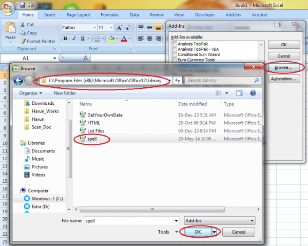 (৩) Browse এ ক্লিক করে Copy করে রাখা spell2007 file টি select করে ok click করি।