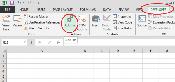 Developer tab থেকে Add-Ins এ click Add-Ins option open করি।