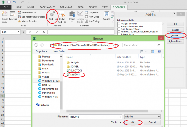 (৩) Browse এ ক্লিক করে Copy করে রাখা spell2013 file টি select করে ok click করি।