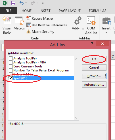 (৪) এবার spell2013 এ টিক দিয়ে ok click করি।