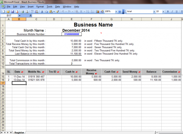 চট্টগ্রামের বিশিষ্ট ব্যবসায়ী রাসেল ভাইয়ের জন্য একটি নতুন বিকাশ বিজনেস ম্যানেজমেন্ট ফাইল ফাইল তৈরী করলাম। আশা করি এটি অন্যান্য ব্যবসায়ী ভাইদের জন্য বিকাশ ব্যবসায়ের হিসাব সংরক্ষণে উপকারে আসতে পারে তাই আপনাদের সুবিধার্থে আপলোড দিলাম।
