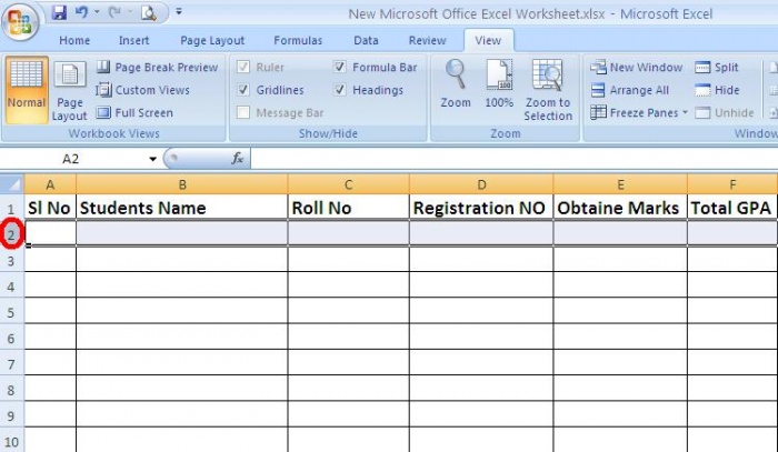 এ জন্য যে কাজটি করতে হবে তা হল- টাইটেল এর রো টি সবসময় Show করিয়ে রাখার জন্য প্রথমে যে রো টি Show করে রাখতে হবে তার পরের রো টি সিলেক্ট করুন। আমি ১ নং রো টি Freeze করতে চাই তাই ২নং রো টি সিলেক্ট করলাম।