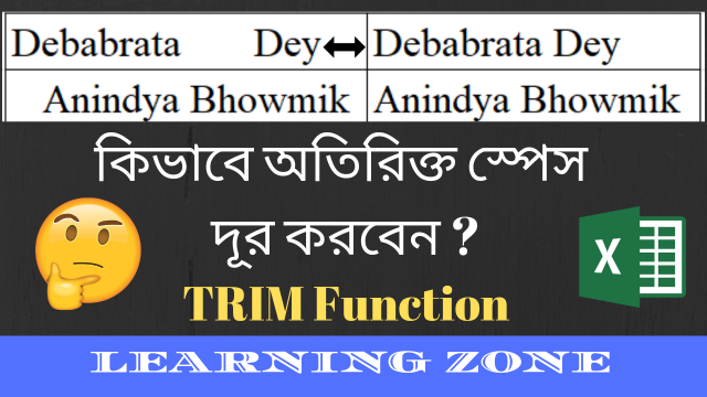 আজকের আলোচ্য বিষয় হল TRIM Function | How to Remove Extra Spaces in Excel Cells। এক্সেলে আমাদেরকে অনেক সময় এক্সটার্নাল ডেটা নিয়ে কাজ করতে হয়। এক্সটার্নাল ডেটা অনেক সময় খুবই অগোছালো হয় এবং অনেক শব্দের মাঝখানে Extra স্পেস থাকে। এই স্পেসগুলোকে manually remove করা অনেক সময় সাপেক্ষ ব্যাপার। আজকের ভিডিওতে আমি দেখিয়েছি কিভাবে এই Extra স্পেস গুলিকে খুব তাড়াতাড়ি remove করতে পারবে। আমি আশা করবো তোমরা সবাই ভিডিওটি প্রথম থেকে শেষ পর্যন্ত দেখবে। ভিডিওটি দেখার জন্য এখানে ক্লিক করো