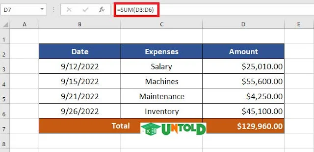 নিচের ইমেজটি দেখুন। এখানে কোনো একটি কোম্পানীর সেপ্টেম্বর মাসের খরচের হিসাব দেখানো হয়েছে।