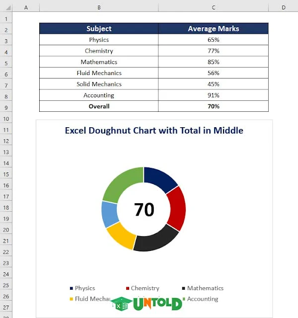 এখানে ডোনাট চার্টের মাধ্যমে টেস্ট পরীক্ষার গড় মার্ক দেখানো হয়েছে।