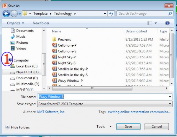 Save: ব্যাকস্টেজ এ গিয়ে Save এ ক্লিক করলে Save as ডায়ালগ বক্স আমাদের সামনে দৃশ্যমান হয়। এই বক্সের File name অংশে আপনি যে নামে ফাইলটি সেভ করবেন তা লিখুন। Save as type এর ডানপাশে black down arrow তে ক্লিক করলে ফাইল টাইপ মেনুটি ওপেন হবে। এখান থেকে PowerPoint presentation অথবা PowerPoint 97-2003 presentation এর যেকোন একটি সিলেক্ট করুন। তবে আপনি যদি ফাইলটি অন্য কোথাও নিতে চান বা কাউকে মেইল করে পাঠাতে চান তাহলে অবশ্যই ২য় অপশানটি সিলেক্ট করুন। কারন, সবাই হয়তো অফিস ২০১০ ব্যবহার নাও করতে পারেন।
