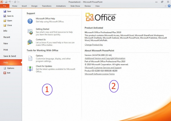 Help: এই ফিচারে মাইক্রোসফটের আপডেট, সহায়তা ও আপনার ইন্সটল করা প্রোগ্রামটির একটিভেশান সংক্রান্ত তথ্য থাকে।