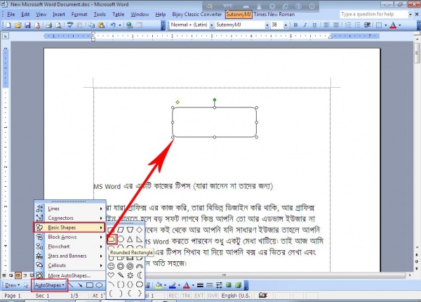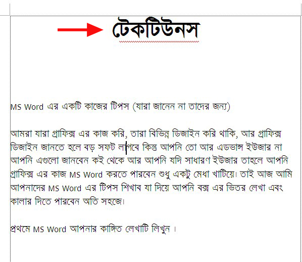 প্রথমে MS Word আপনার কাঙ্গিত লেখাটি লিখুন ।