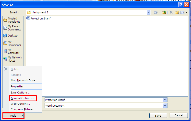 তারপর নির্দিষ্ট লোকেশন সিলেক্ট করে নিচের চিত্রের মত Tools এরপর General Options এ ক্লিক করুন।