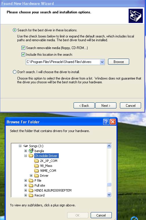 এর পরের Wizerd এ Include this location in the search এ টিক চিহ্ন দিয়ে Browse এ China pc suite_Driver_2k_XP_Com পথ দেখিয়ে দিন।