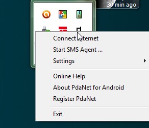৬ এখন Desktop এর নোটিফিকেশান বার হতে দেখুন PDANet software টি চালু অবস্থায় আছে । ডান ক্লিক করে Connect internetকরুন ।