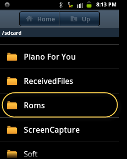 2. ফাইল ম্যানেজার থেকে SD Card মানে মেমরী কার্ডে ঢুকুন। দেখুন এখানে Roms নামের নতুন ফোল্ডার তৈরী হয়ে গেছে