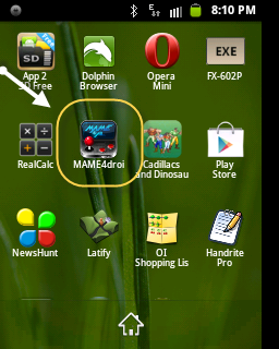 3. এবার মোবাইলের মেনুতে যান। Mame4droid এ ক্লিক করুন।