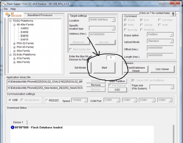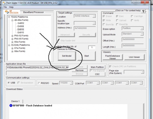 এখন আপনাকে যে কাজটি করতে হবে সেট থেকে SIM-card এবং Memory card টি খুলে নিয়ে সেটটি ব্যাটারি লাগানো অবস্থাই অফ রেখে 1 + 3 একসাথে চাপে ধরে ডাটাক্যাবলটি কম্পিউটারে লাগাতে হবে। তারপর যখন Flash Loader program টি আপনার ফোন কে detect করবে এবং firmware install নিতে শুরু করবে তখন আপনি হাত সরিয়ে ফেলুন।