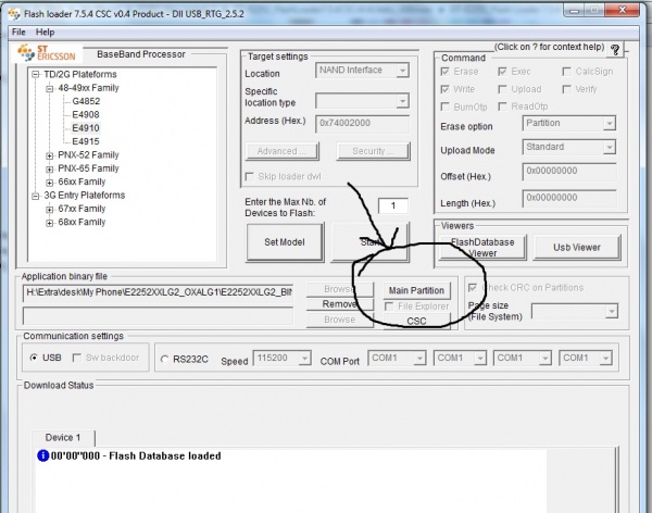 এরপর Main Partition button এ ক্লিক করুন এখন যে window আসবে তা থেকে Browse এ ক্লিক করে E2252XX.ptt ফাইল টিকে BIN folder থেকে সিলেক্ট করে OK দিন।