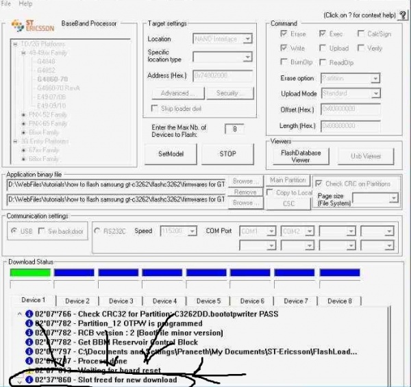 এখন অপেক্ষার পালা ৫-১০ মিনিট অপেক্ষা করুন দেখবেন লোডার সফওয়ার এর window তে Slot freed for new download ম্যাসেজ দেখাবে তখন ফোনটি পিসি থেকে ডিসকানেক্ট করুন এবং ফোনটি অন করুন। অন করার পর *2767*3855# কোডটি ডায়াল করুন। দেখবেন ফোনটি একবার Restart মারবে। ব্যাস সব কাজ শেষ এখন ফোনটি ব্যবহার করুন সেই আগের মতই যখন এটি নতুন কিনেছিলেন।