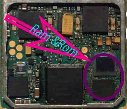 Ram ওRom :Ram ও Rom হচ্ছে একটি মেমোরি ডিভাইস। Ram এর অর্থ হচ্ছে Random Access Memory.আর Rom এর অর্থ হচ্ছে Red Only Memory.এই দুটি আইসি সাধারনত C.P.U এর পাশে থাকে। কিছু কিছু সেটের আইসির গায়ে Flash কথাটি লেখা থাকে, সেটাই হচ্ছে Rom এবং এর পাশেরটা হচ্ছে Ram.এই দুটি আইসি সব সময় পাশাপাশি থাকে।