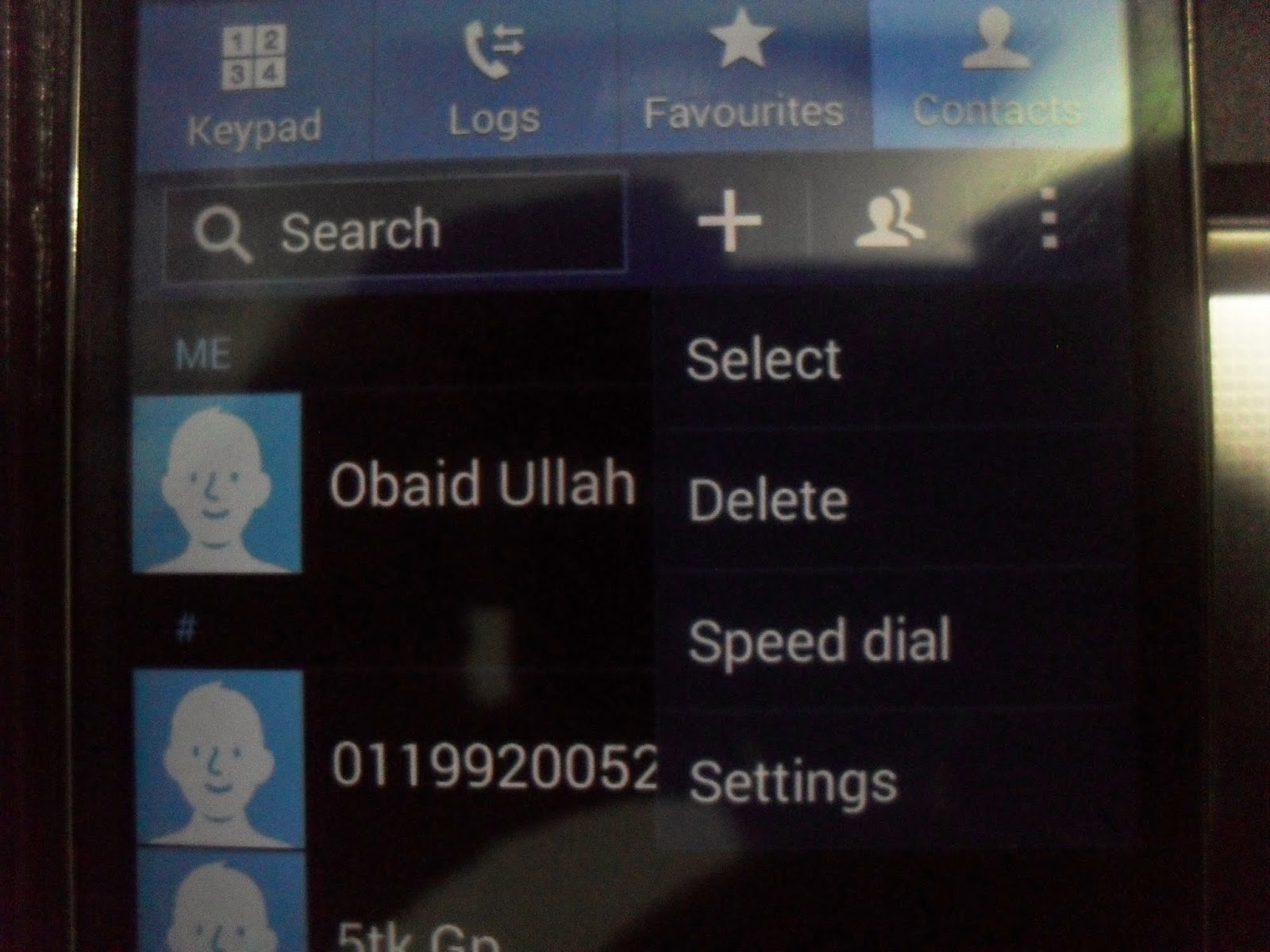 ১. এবার আমি আমার নতুন মোবাইল এর কন্টাক্ট মেনু তে গেলাম...