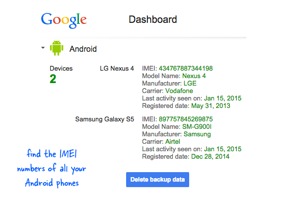 ইউজারনেইম ও পাসওয়ার্ড দিয়ে ড্যাশবোর্ডের অ্যান্ড্রয়েড সেকশনে প্রবে করুন। সেখানে আপনি নিচের চিত্রের মত আপনার মোবাইলে বিস্তারিত দেখতে পাবেন। আইএমইআই নাম্বার, কোন অপারেটরের সিম ব্যবহার করছে ইত্যাদি।