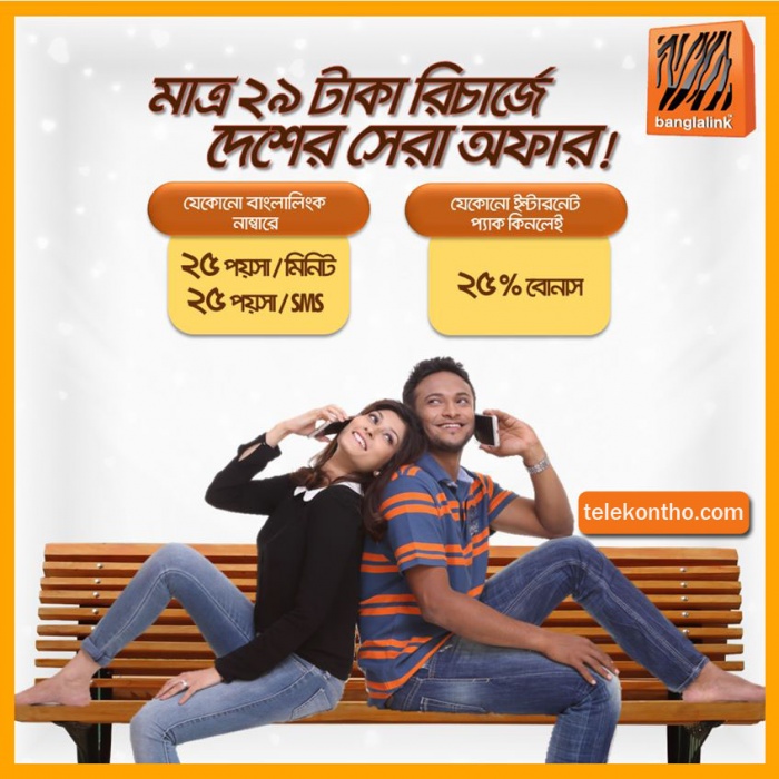এখন বাংলালিংক গ্রাহকরা তাদের বাংলালিংক সিমে ২৯ টাকা রিচার্জ করলেই পাবেঃ