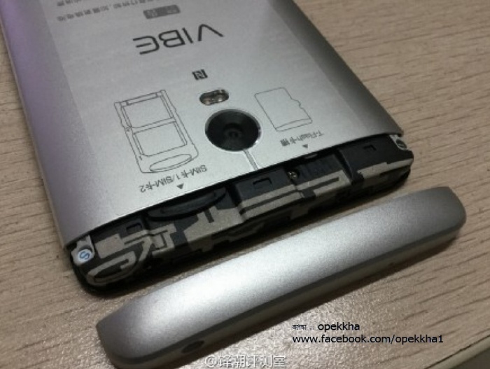 A roomy 5.5" 1080p screen is housed in a magnesium alloy unibody. Inside that is a whopping 5,000mAh battery. You can see a panel on the top comes off, allowing you to access two SIM cards and a microSD. It doesn’t look like the battery comes out of there though.