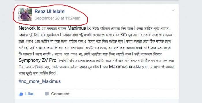 এখন প্রশ্ন হল আমার সেট যদি ঢাকাতে থাকে তবে বরিশাল কেয়ার থেকে যে সেটটা দিল সেটা কার সেট। একটা মোবাইল কোং হিসেবে ম্যাক্সিমাস এর কাষ্টমার সার্ভিস এত বাজে কি ভাবে হয়?