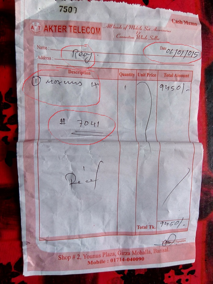 আমি গত 06/01/15 তারিখ বরিশালের একটি দোকান থেকে ম্যাক্সিমাস আইএক্স (Maximus IX) মডেলের একটা সেট কিনি