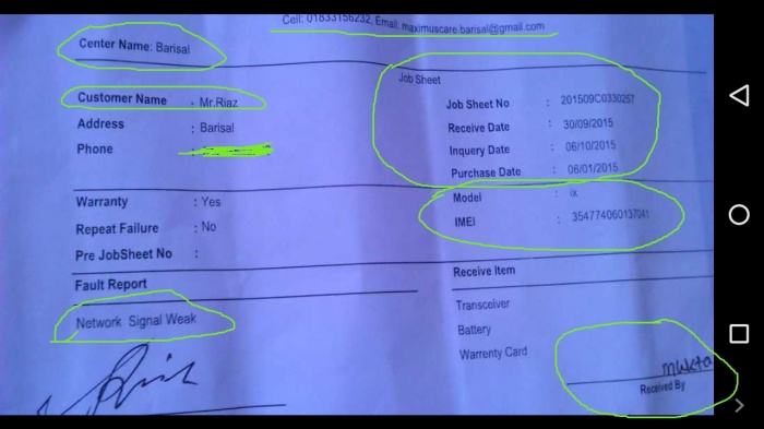 ওরা আমার ভাইকে যানায় যে 06.10.2015 সেট ডেলিভারি দিবে আমার ভাইকে ওরা একটি রিসিট দেয় যার সার্ভিস জব সিট নম্বর হল : 201509C0330257।