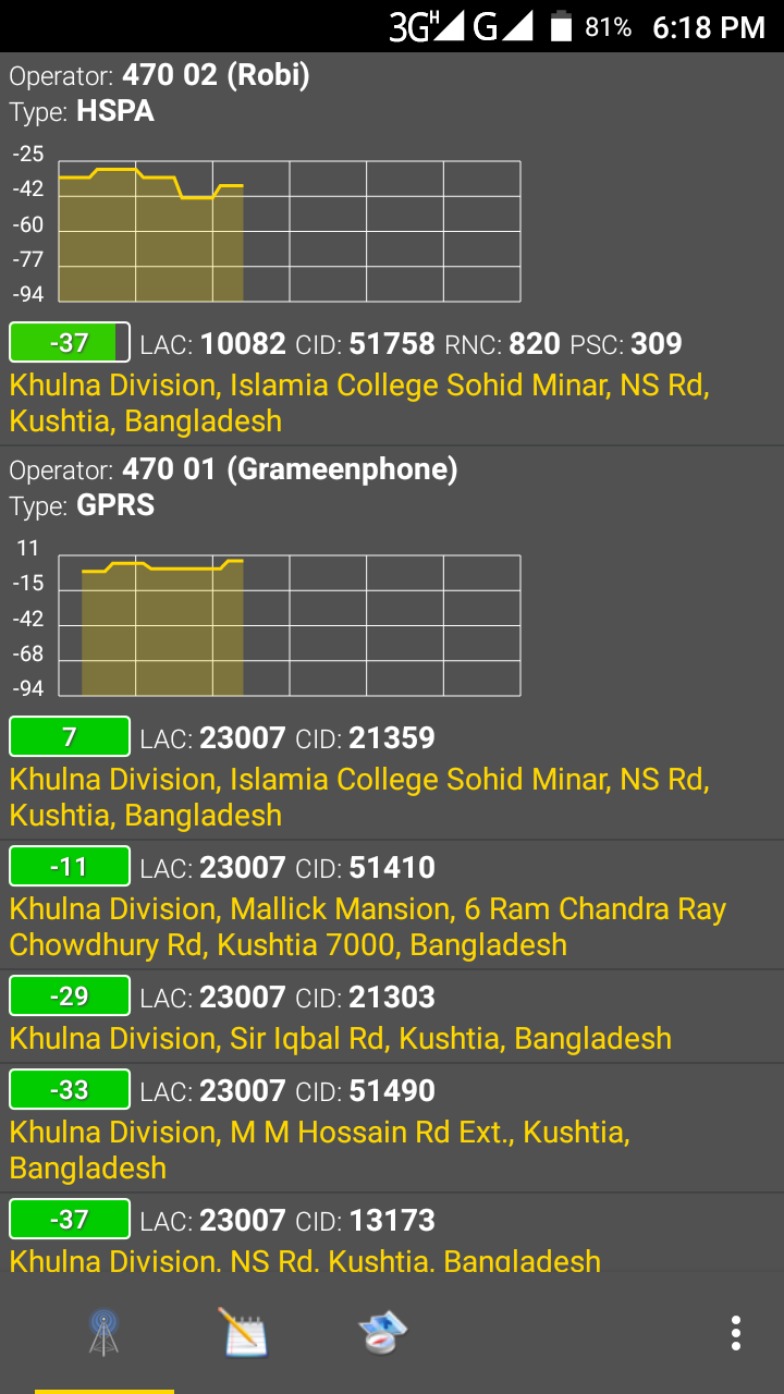 এখানে নীল রঙ্গের ২ টি পিড়ামির রয়েছে, একটি সিম ১ ও অন্যটি সিম ২। এই দুটি টাওয়ারই আমি ব্যবহার করছি এবং এ দুটি টাওয়ার এর যে নাম্বার এই দুটি নাম্বারই হচ্ছে আমার বা আপনার লোকেশন নাম্বার।