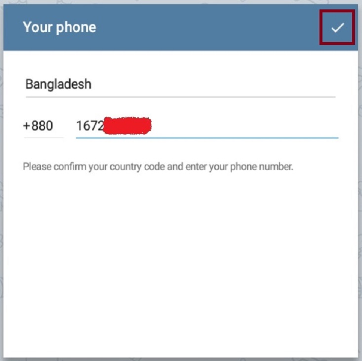 ০ বাদ দিয়ে আপনার মোবাইল নম্বর লিখুন এবং টিক চিহ্নতে ক্লিক করুন।