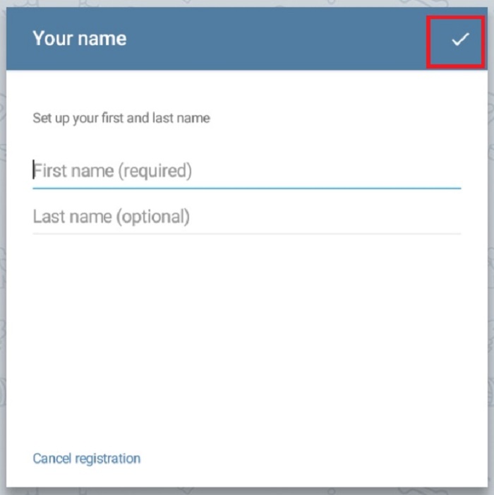 আপনার নাম লিখুন এবং টিক চিহ্নতে ক্লিক করুন।