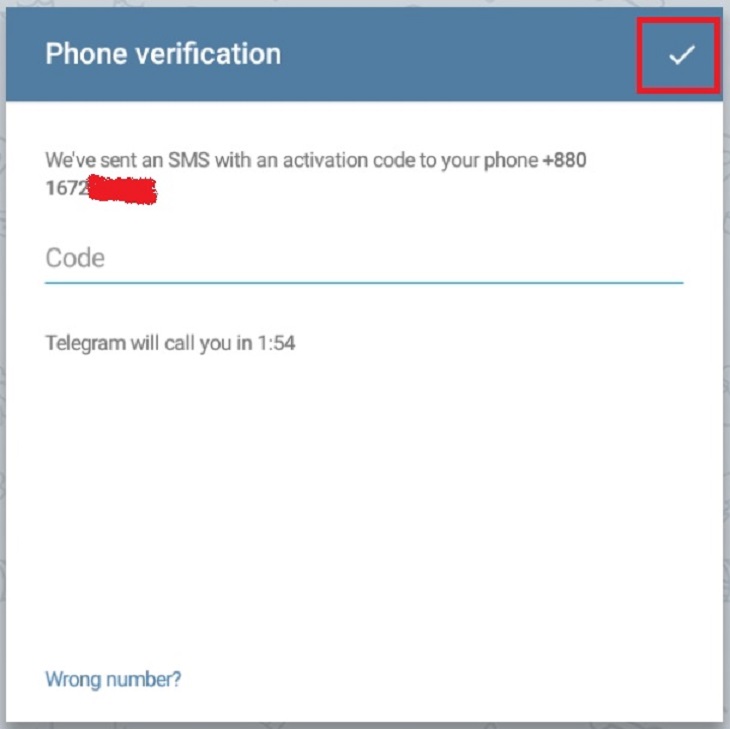 আপনার ফোনে ভেরিফিকেশন কল অথবা এসএমএস আসবে। ভেরিফিকেশন কোড দিয়ে টিক চিহ্নতে ক্লিক করুন।