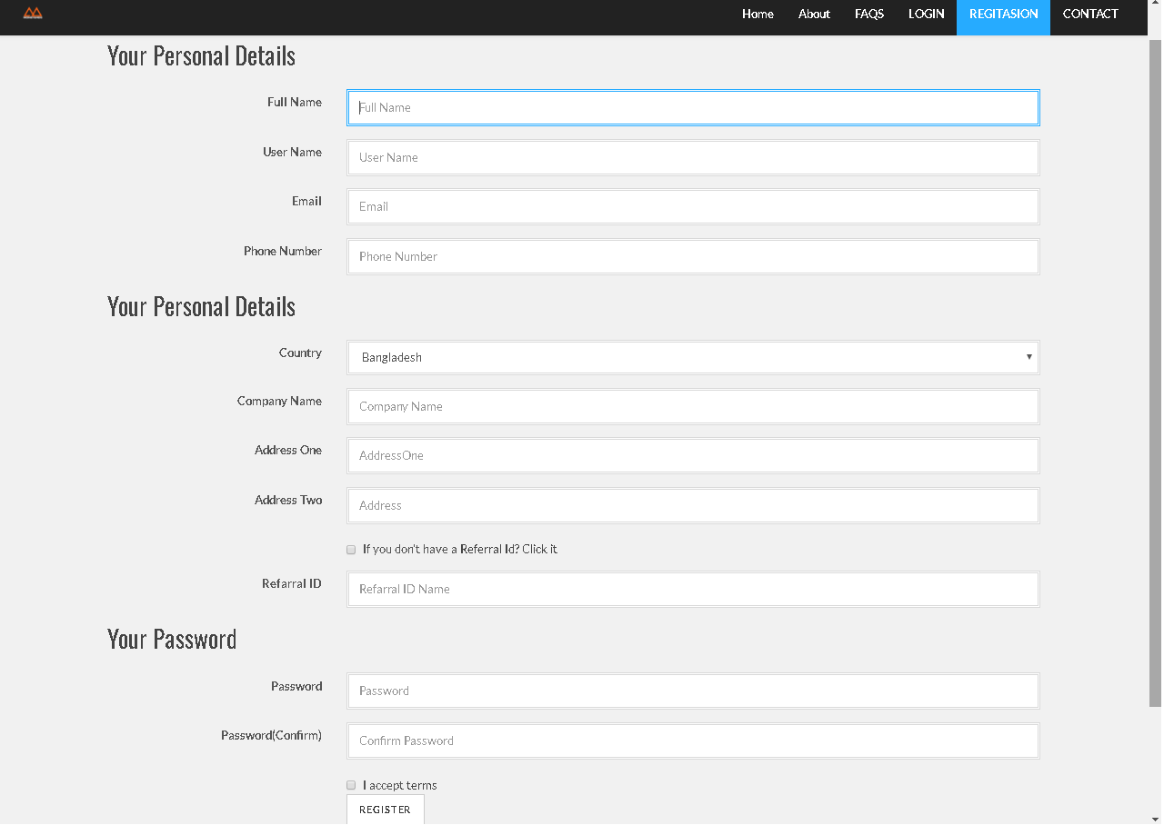 ২. আপনার নাম, ইমেইল, বাসার ঠিকানা, মোবাইল নাম্বার দিন Company name-Home দিন।