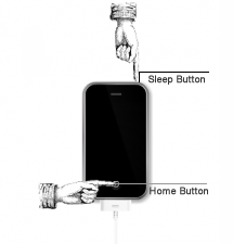 ৮। এরপর Sleep বাটনটিকে কিন্তু ছাড়বেন না। ওইটা সহ আইফোনটির Home বাটনটিকে ১০ সেকেন্ট চেপে ধরুন। খেয়াল রাখবেন যাতে বাটনগুলি নিময়অনুযায়ী চাপা হয়। নির্ধারিত সময়ের পূর্বে কখনোই বাটন ছেড়ে দিবেন না।