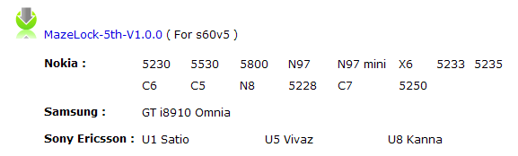 MazeLock একটি সম্পূর্ণ আলাদা ধরণের সিকিউরিটি সফট্ওয়ার যা আপনার টাচ ফোনের (S60V3) লকিং সিস্টেমকে ভিন্ন রকমের রূপ দেয়। S60 V3 এর সমন্ধে বলতে পারছি না। কারণ এই ভার্সনের বর্তমানে আমার কাছে কোন সেট নেই। ওদের মেইন ওয়েবসাইটে S60 V3 এর জন্যও ডাউনলোড লিংক দেওয়া আছে। তাই S60 V3 এর জন্যও সেয়ার করলাম। এটি সম্পূর্ণ একটি ফ্রি সফট্ওয়ার। 2010-11-12 তারিখে রিলিজ পেয়েছে। এর বর্তমান ভার্সন 1.00।