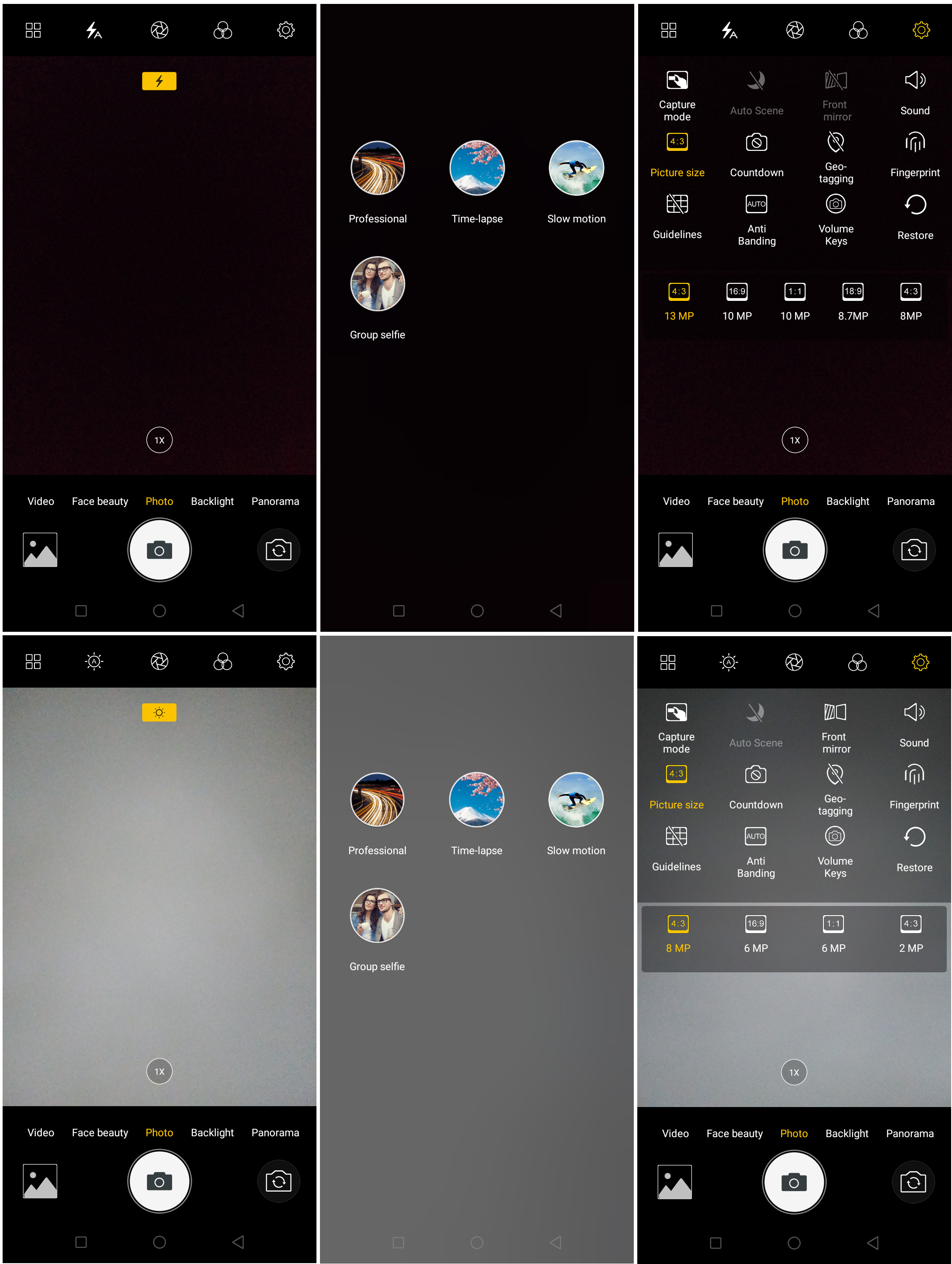 রিয়ার ক্যামেরাটিতে Face Detection, Digital Zoom, Self-timer, Touch Shot এর মতন ফিচারস রয়েছে। ক্যামেরা সেটিংস ও মোড হিসেবে রয়েছে: Normal Mode, Professional Mode, Portrait Mode, Fingerprint Capture, Face Beauty, Auto Scene, Slow Motion, Time-lapse, Backlight, Panorama, Filter Mode, Night Mode।