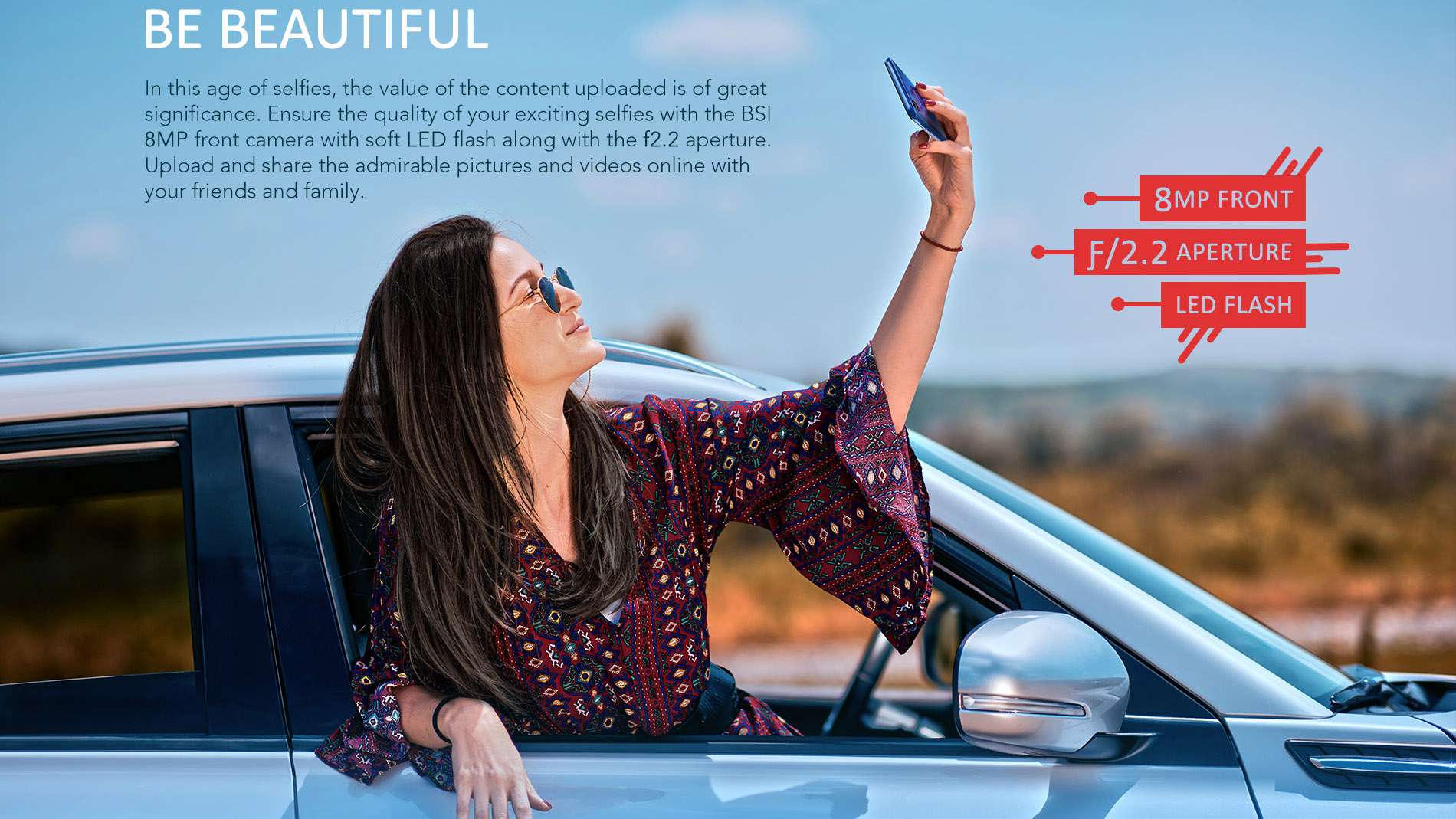 আর ফ্রন্ট ক্যামেরা এর ফিচারস হিসেবে রয়েছেঃ Face Detection, Digital Zoom, Self-timer, Touch Shot। ক্যামেরা সেটিংস ও মোড হিসেবে রয়েছে: Exposure Control, Front Mirror, Geo-tagging, Fingerprint Capture, Face Beauty, Filter Mode।