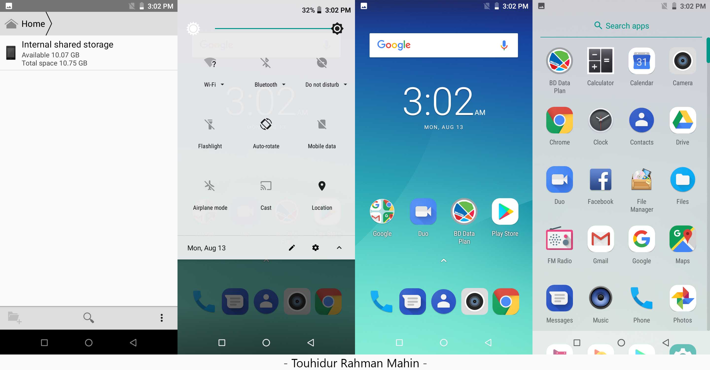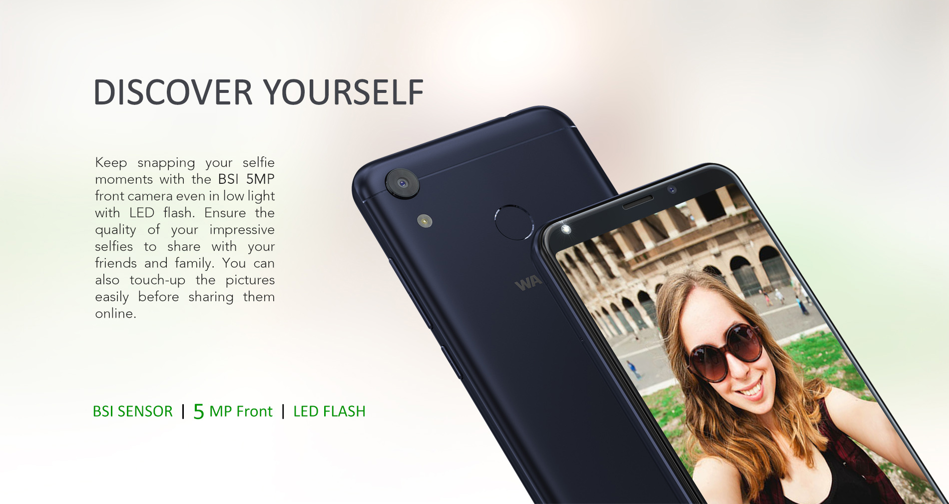 ডিভাইসটির সামনে রয়েছে একটি ফ্রন্ট ফেসিং ৮ মেগাপিক্সেল BSI সেন্সরযুক্ত ক্যামেরা। সামনেও থাকছে একটি সফট এলইডি ফ্ল্যাশ। রয়েছে বেশ কিছু ক্যামেরা সেটিংস। আর শুটিং মোড হিসেবে রয়েছে ; নরমাল মোড, ফেস বিউটি, এইচডিআর, স্ক্রীন মোড। ফ্রন্ট ক্যামেরায় সফট এলিডি ফ্ল্যাশ পাওয়া যাবে। আর ডিভাইসটির এই ক্যামেরা ১০৮০*১৯২০ পিক্সেলে এইচডি ভিডিও রেকর্ড করতে পারে। পাশাপাশি সেলফি এর জন্যেও এটি একটি দারুন ক্যামেরা।