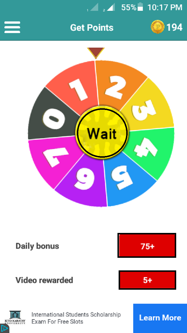 পয়েন্ট আর্নিং করার জন্য অনেক গুলো অপশন রয়েছে। এখান থেকে প্রতিদিন আপনি ৭৫ পয়েন্ট করে ফ্রি পাবেন। তার জন্য নিচের Daily bonus অপশনের সাথে থাকা 75+ বাটনে ক্লিক করুন। তাহলে দেখতে পাবেন আপনার পয়েন্টের সাথে ৭৫ পয়েন্ট যুক্ত হয়ে গেছে। আপনি স্পিন করেও এখান থেকে পয়েন্ট আর্নিং করতে পারবেন। তার জন্য নাম্বার গুলো মধ্যে থাকা Spin বাটনে ক্লিক করুন। তাহলে আপনার স্পিনটি ঘুরতে থাকবে এবং শেষ হলে আপনি যা পেয়েছেন তা পয়েন্টে যুক্ত হয়ে যাবে। আপনি চাইলে ভিডিও দেখেও আর্নিং করতে পারেন। তার জন্য একেবারে নিচে থাকা video rewarded অপশনের সাতে থাকা 5+ অপশনে ক্লিক করুন তাহলে আপনি ভিডিও দেখতে পাবেন। এবং ভিডিও দেখা শেষ হয়ে গেলে আপনার পয়েন্টের সাথে ৫ পয়েন্ট যুক্ত হয়ে যাবে।