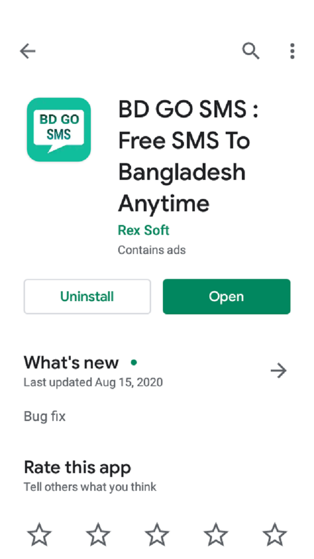 নিজের নাম্বার গোপন রেখে ম্যাসেজ দিতে হলে একটি অ্যাপের প্রয়োজন যা আপনি প্লে স্টোরে পেয়ে যাবেন। সেজন্য প্লে স্টোরে গিয়ে সার্চ বারে টাউপ করবেন BD GO SMS। তাহলে নিচের মতো একটি অ্যাপ দেখতে পাবেন।